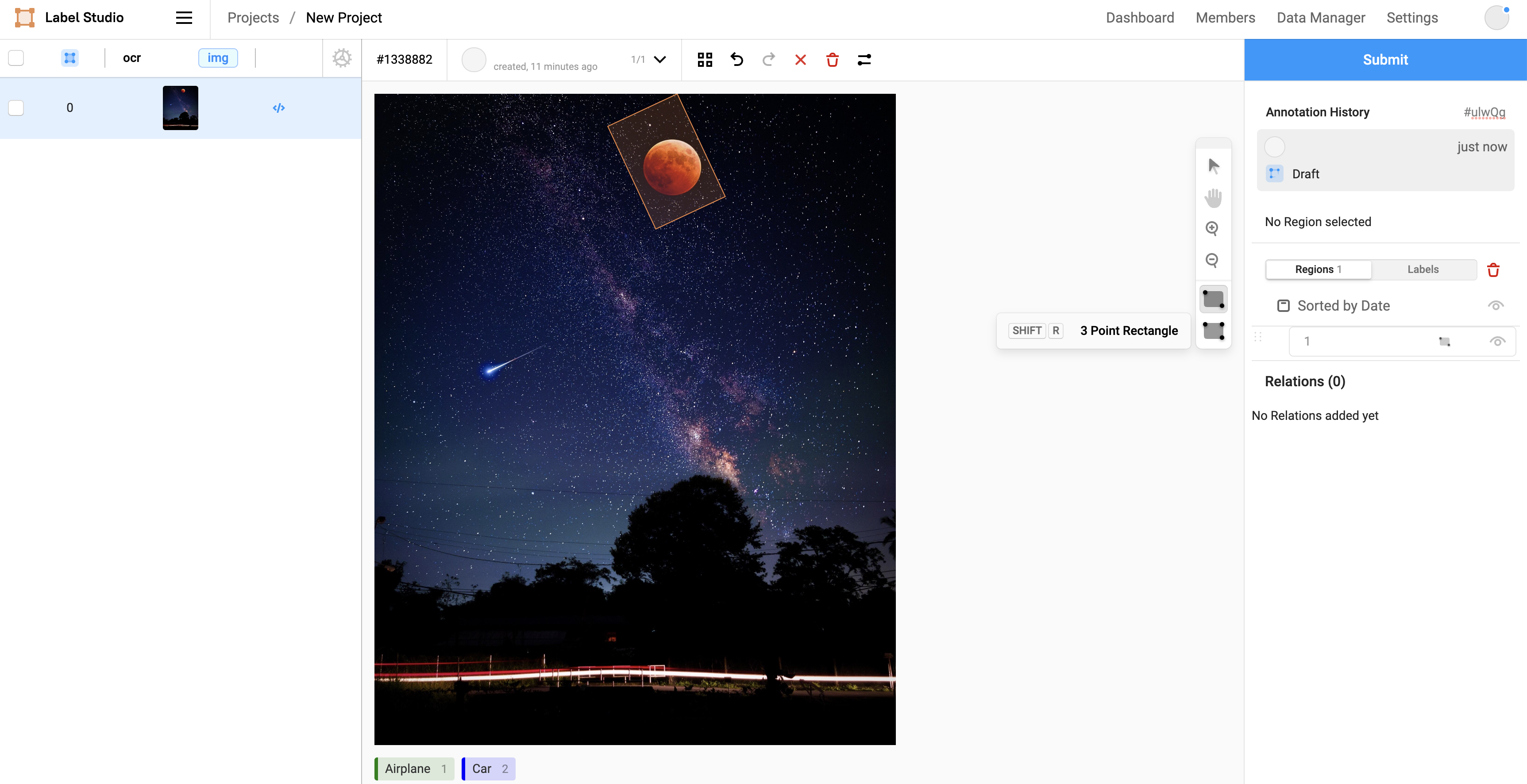 As an annotator, you can also create a rotated bounding box with the “three point click” or “two point click” feature to annotate images.